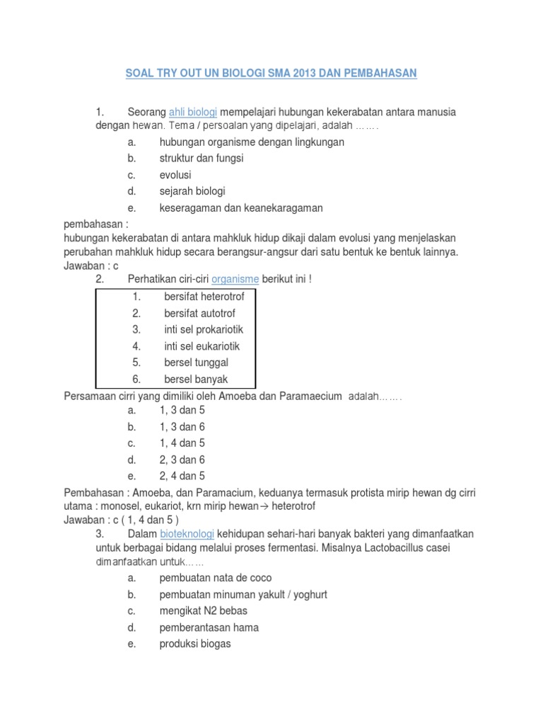 Soal Try Out Un Biologi Sma 2013 Dan Pembahasan - [DOCX Document]
