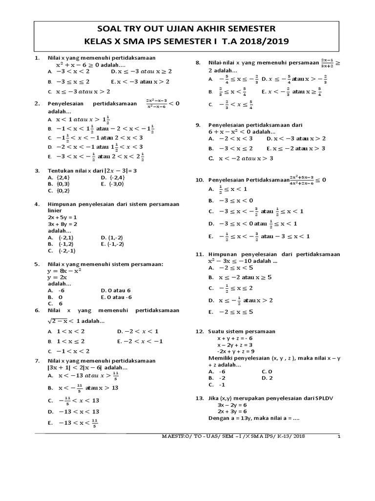 Soal Try Out Matematika Sma Ips Dan Kunci Jawaban - Guru Galeri