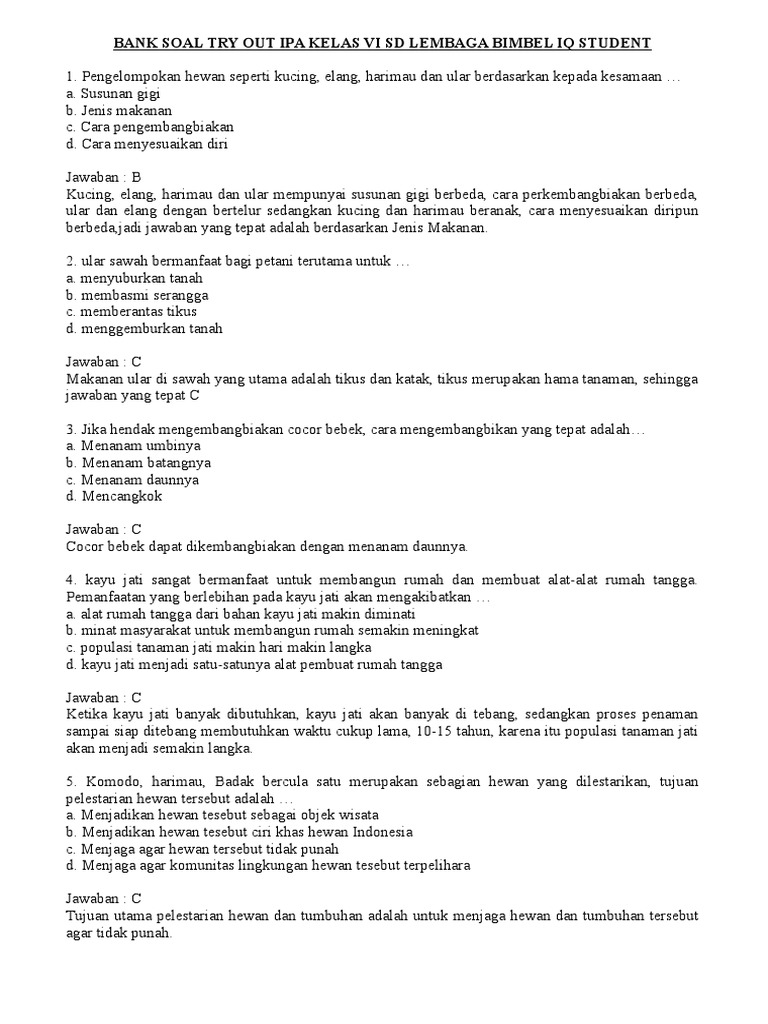 Soal Try Out Kelas 6 2019 Dan Kunci Jawaban Ipa - Dapatkan Data