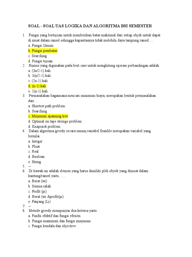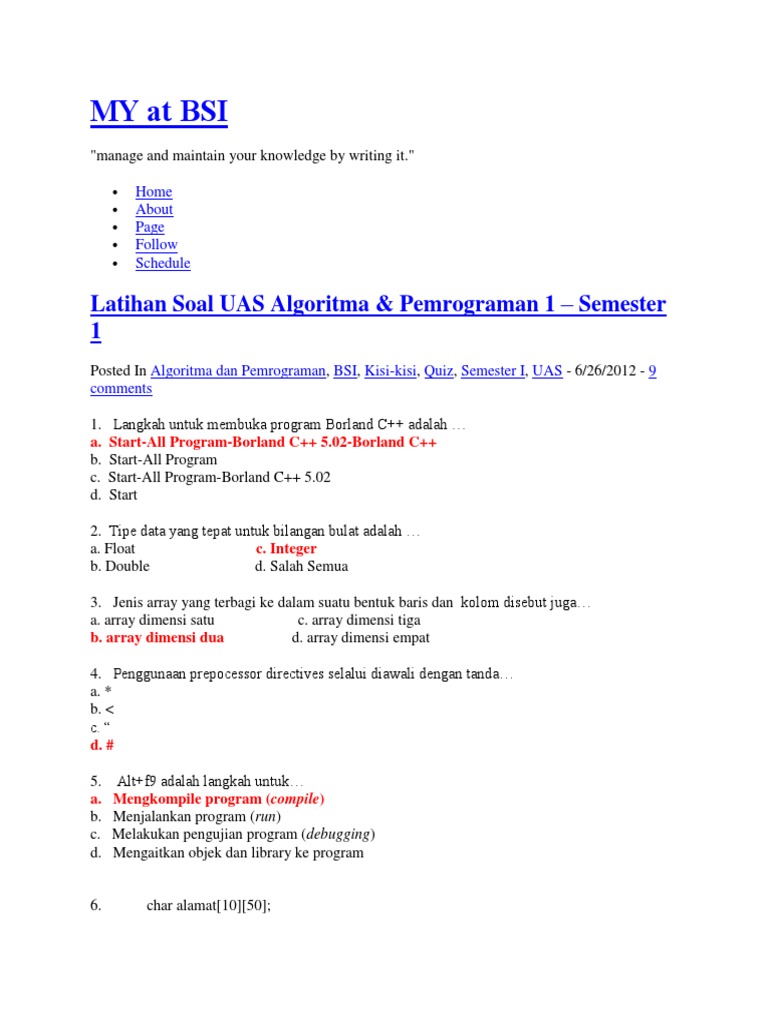 16++ Contoh Soal Uts Logika Algoritma Bsi Semester 1 - Kumpulan …