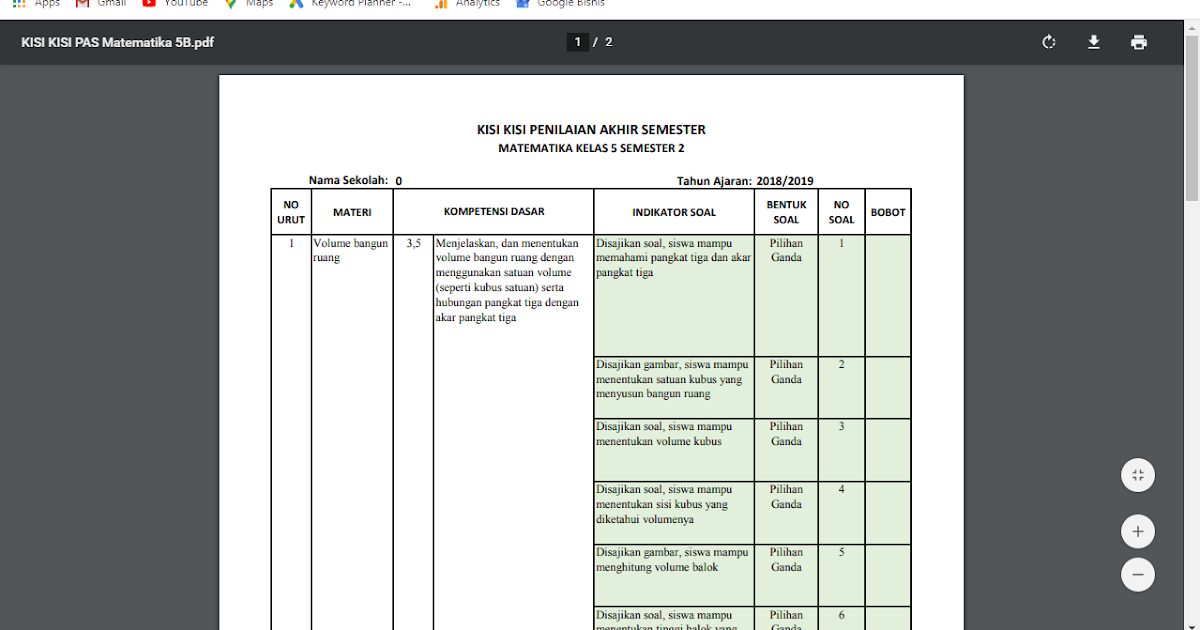 Kisi-kisi PAS Matematika Kelas 5 K13 Tahun 2020/2021 …