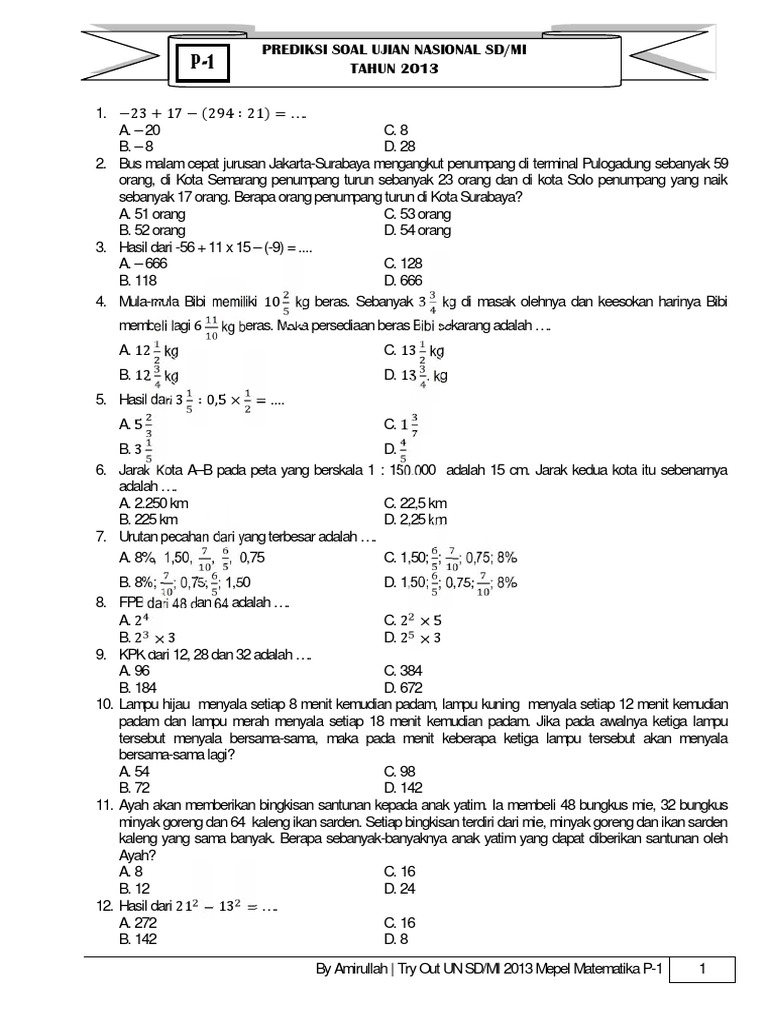 Latihan soal ujian nasional matematika sd