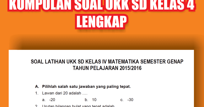 Soal UKK Semester 2 Kelas 4 dan Kunci Jawabannya - SekolahDasar.Net