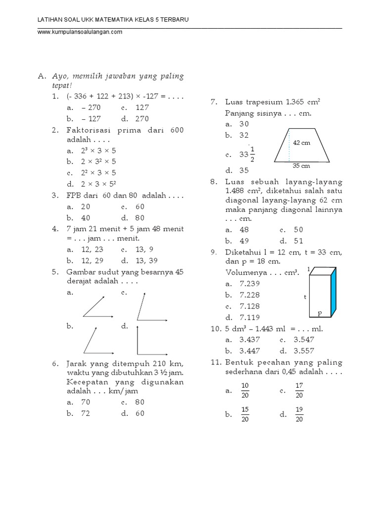 Soal Ukk Matematika Kelas 5 - developerlasopa