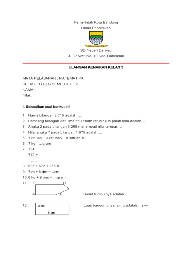 Soal UKK / UAS Matematika Kelas 3 Semester 2 Terbaru Tahun 2018 …