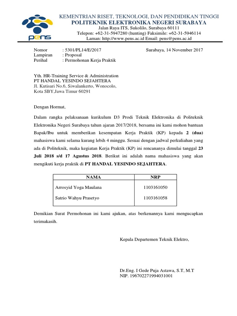 Surat Pengantar Pt.handal Yesindo Sjahtera