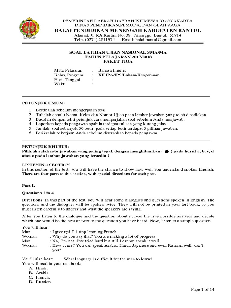 Soal Latihan Un Bahasa Inggris Sma 2017 Paket 3-1 | Hdmi