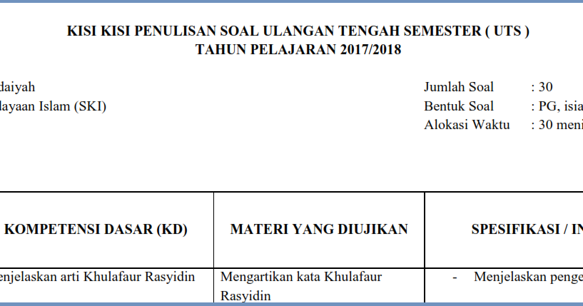 Contoh Soal UTS SKI Kelas 3 MI Semester Genap ~ Berbagi Informasi …
