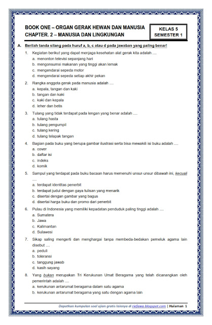 Soal Ski Kelas 5 Semester 1 Dan Kunci Jawaban 2018