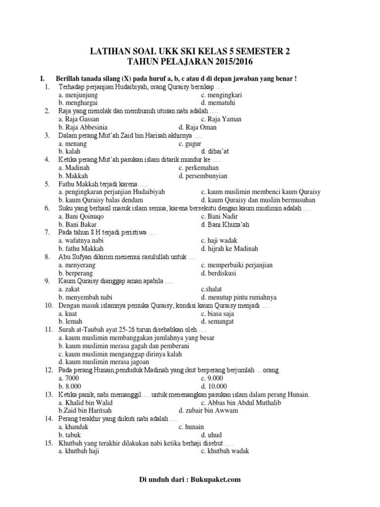 Soal Ukk Ski Kelas 5 Sd Dan Mi