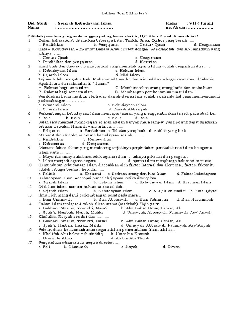 Download Kumpulan Soal PTS/UTS Sejarah Kebudayaan Islam (SKI …