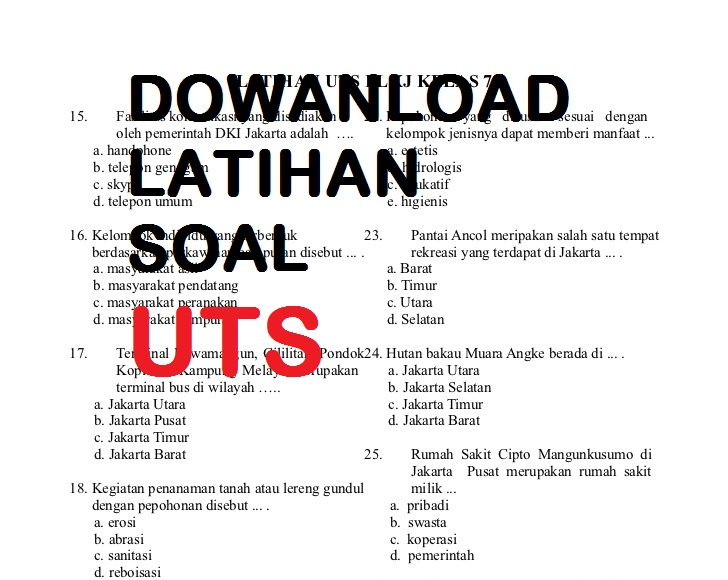 Download Kumpulan Soal PTS/UTS Kelas 7 SMP/MTs Semester 2 …