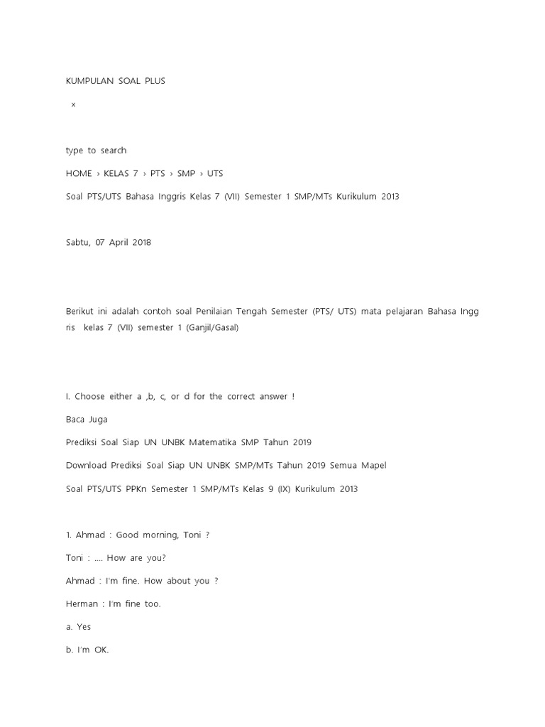 PDF) SOAL UTS B. INGGRIS KELAS 7 SEMESTER | Ondowiyah Boganingrum …