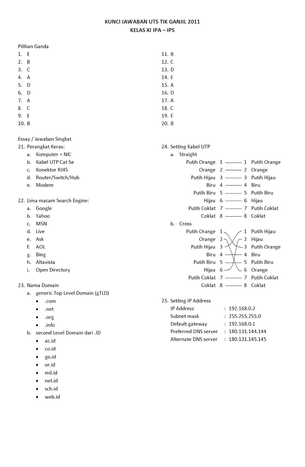 Jawaban UTS TIK Kelas XI IPA-IPS dan XII IPA Semester Ganjil 2011 …