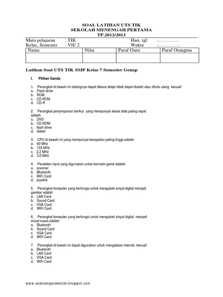 Lengkap - 45+ Contoh Soal UTS TIK Kelas 7 SMP/MTs Semester Ganjil …