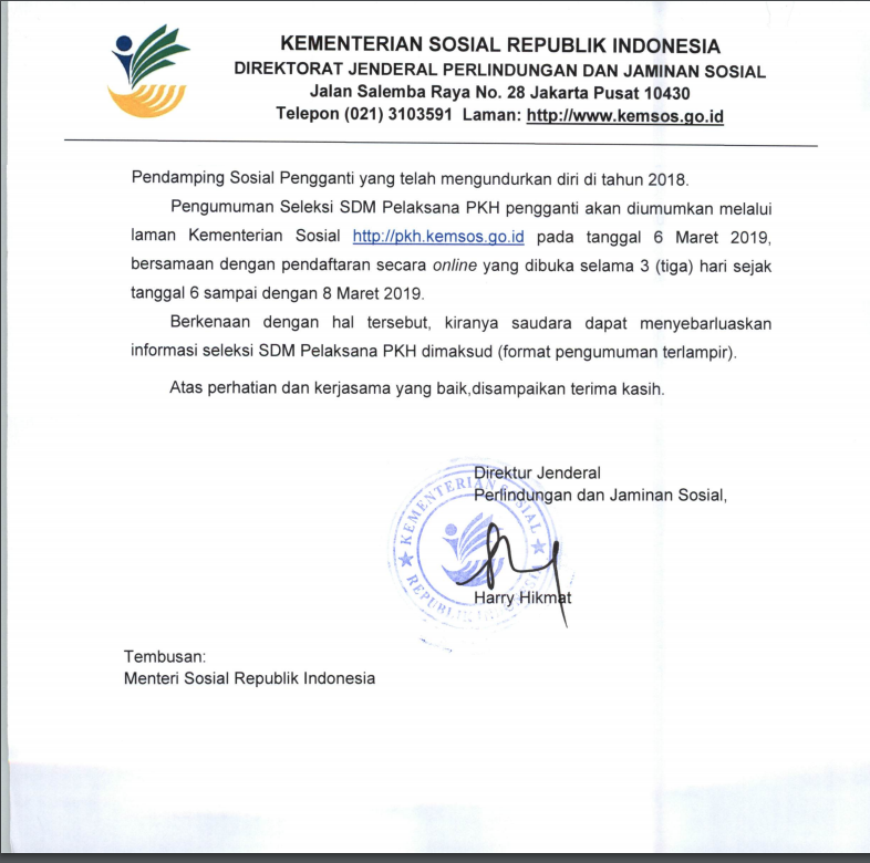 Pengumuman Seleksi SDM Pelaksana PKH Tahun 2019