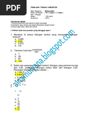 B Soal Uraian Matematika Kelas 7