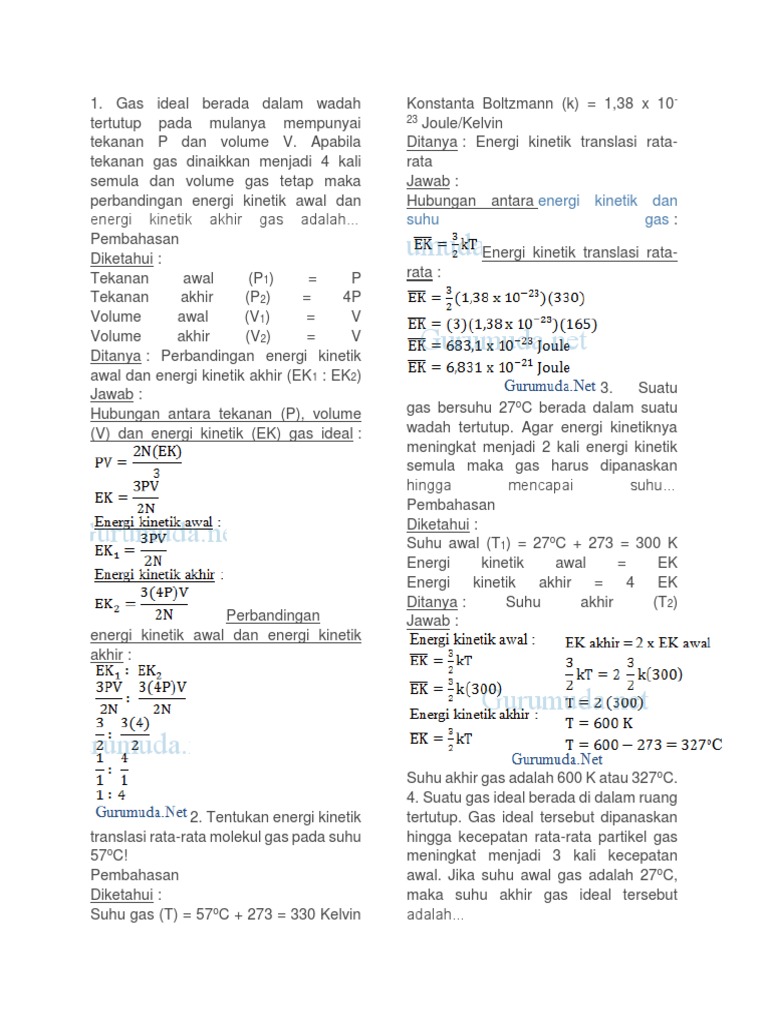 Rangkuman, Contoh Soal Teori Kinetik Pembahasan & Jawaban
