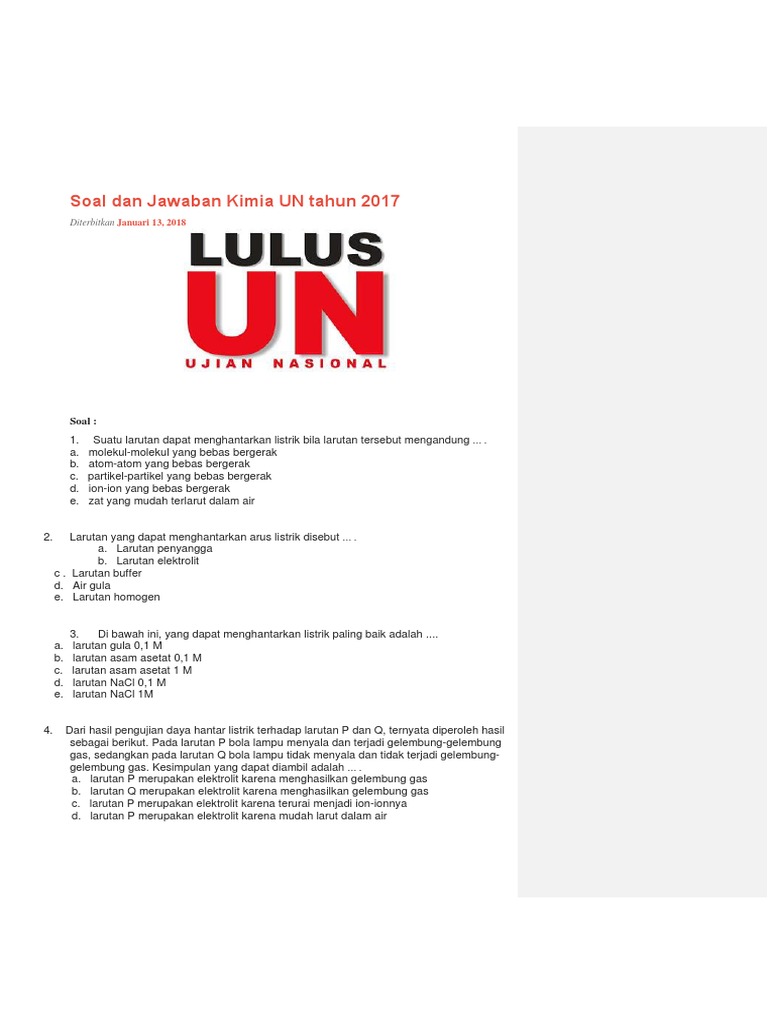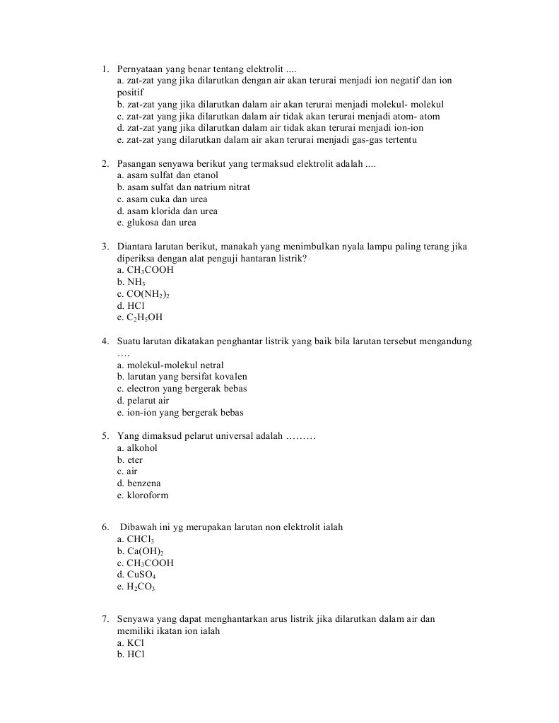 Contoh Soal Larutan elektrolit dan non elektrolit - Asep Respati