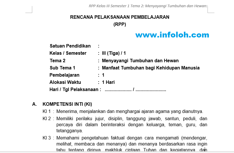 Rpp sd kelas 3 tema 2 menyayangi tumbuhan dan hewan revisi 2018