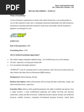 Subway Frenchise Business Plan 2016 | Fast Food Restaurants | Retail