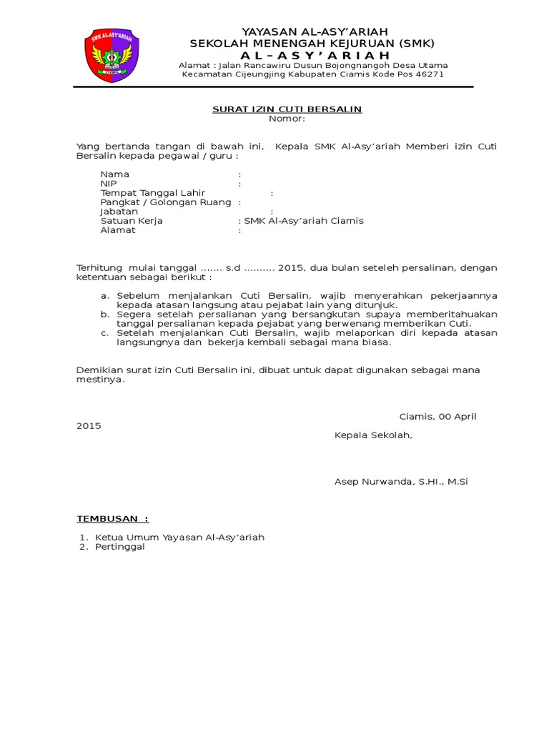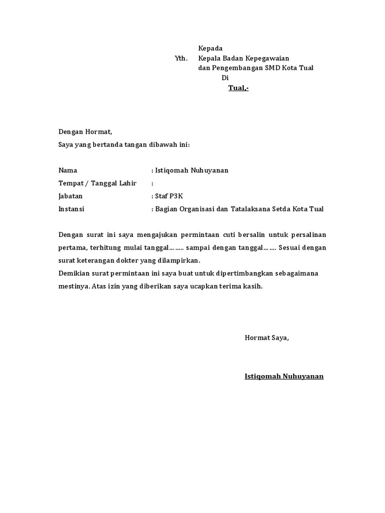 DOC) SURAT IJIN CUTI BERSALIN | arkho adidharma - Academia.edu