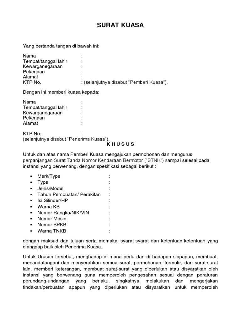 Contoh Surat Kuasa Perpanjangan STNK - omndo.com