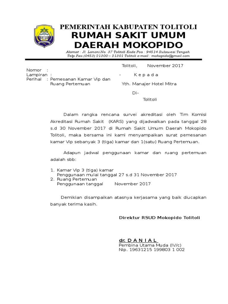 Contoh Surat Pemesanan Hotel - Brankas Arsip