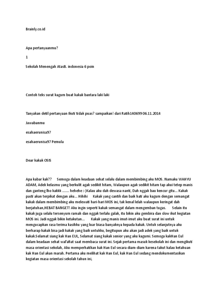 Contoh Surat Cinta Untuk Kakak Senior Ospek Cowok - Download …
