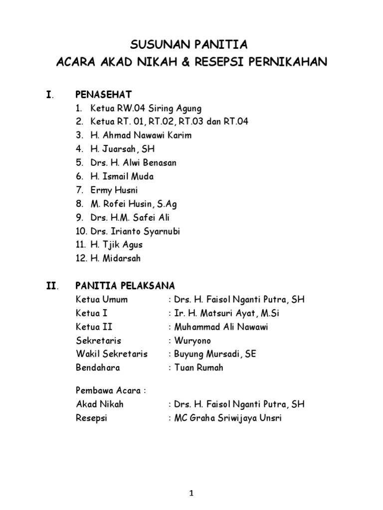 Susunan Panitia Resepsi Pernikahan - [DOCX Document]