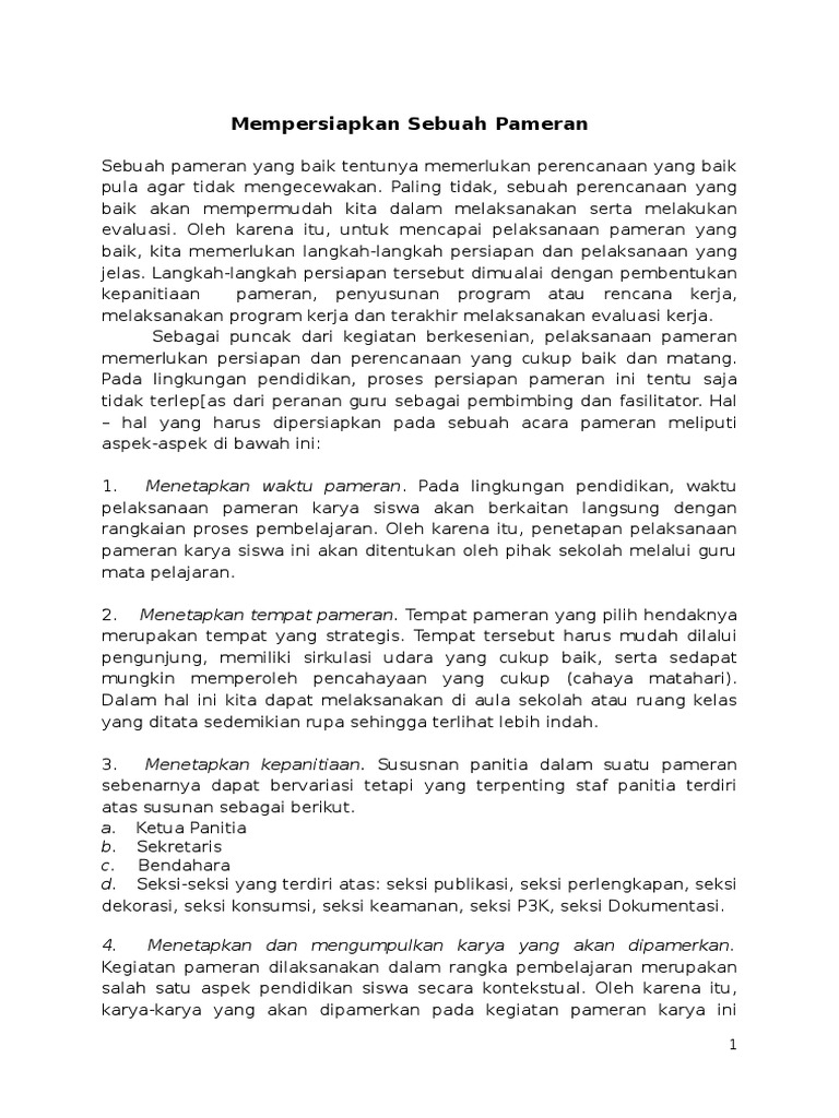 DOC) Urutan Kegiatan dalam Merencanakan Pameran Seni Rupa | yuli …
