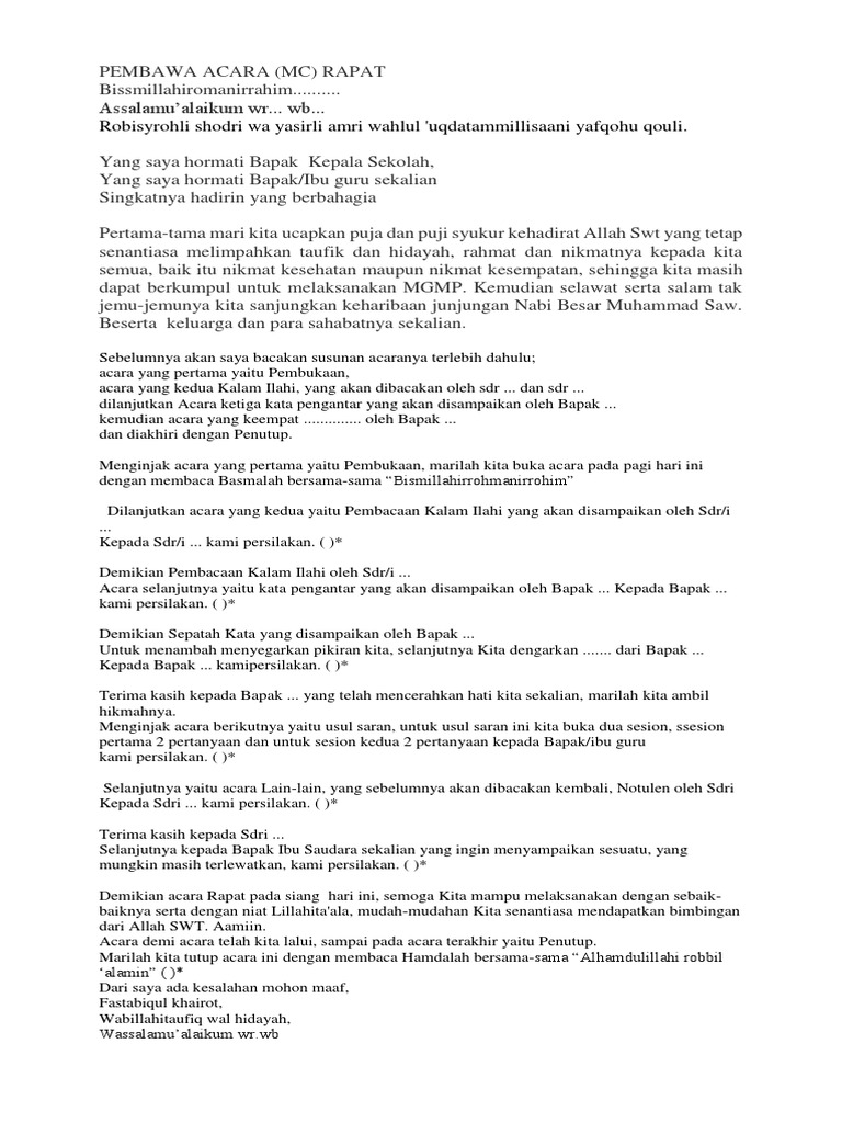 DOC) Teks mc musyawarah ambalan | Java Paris - Academia.edu