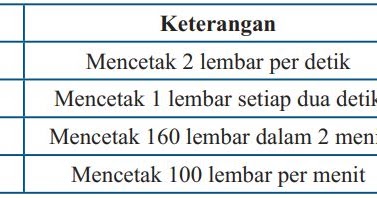 Kunci Jawaban] Tabel berikut menunjukkan kecepatan empat merek printer. Printer manakah yang mencetak paling cepat? ~ ROFA Education Centre