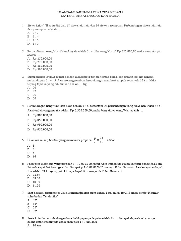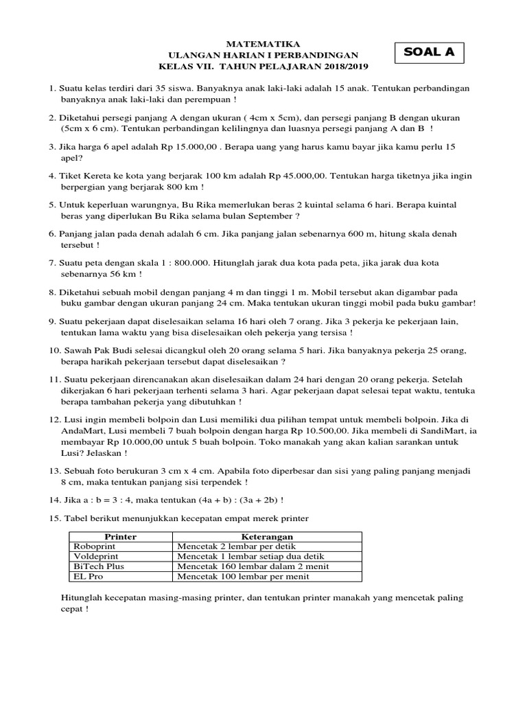 Soal a Ulangan Harian 1 Perbandingan