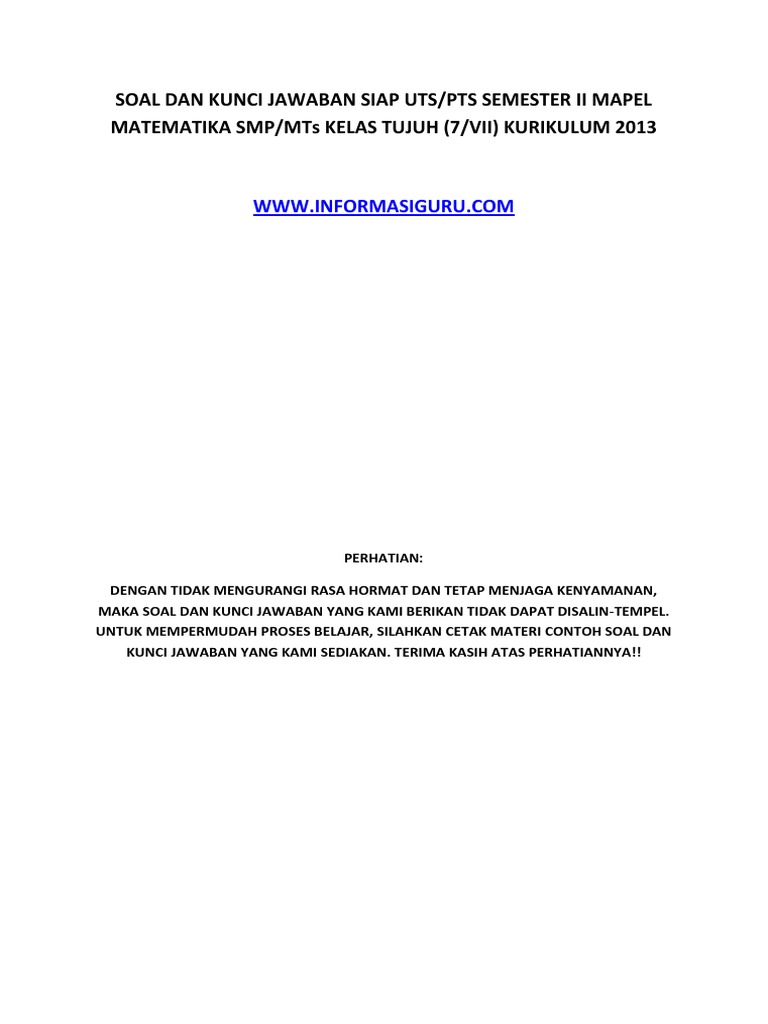 MID-UTS GENAP MATEMATIKA KELAS 7 SEMESTER 2 - PDF Free Download