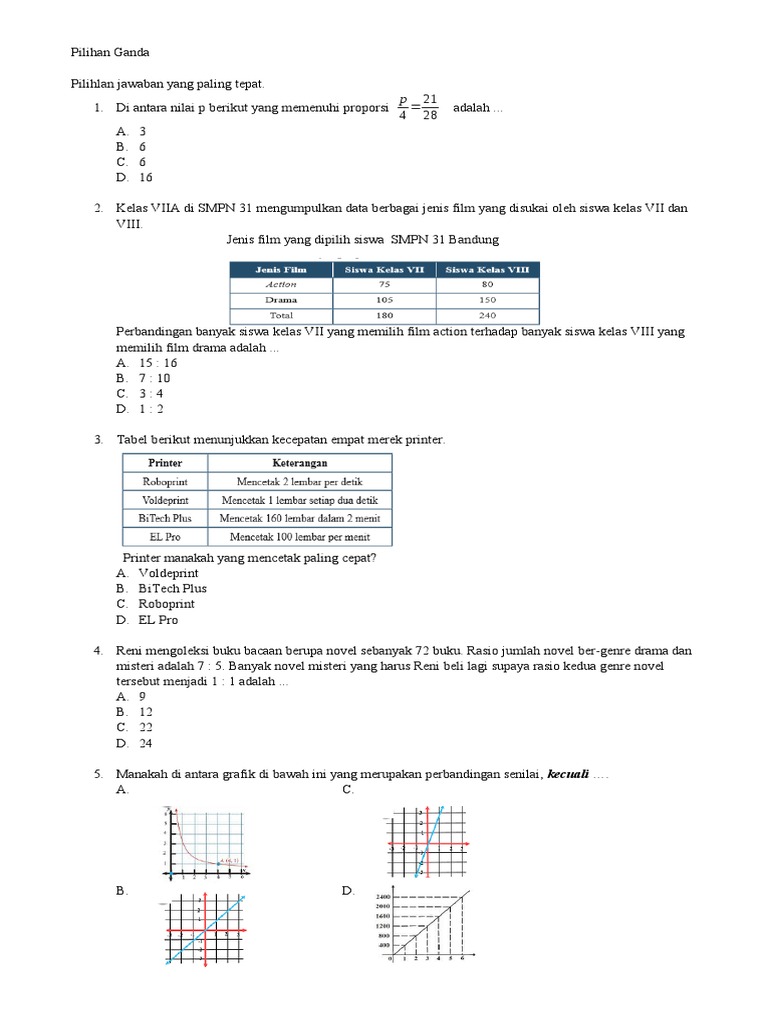 Kelas 7 - Perbandingan - Uji Kompetensi 5 - PG by un petit-dejeuner86