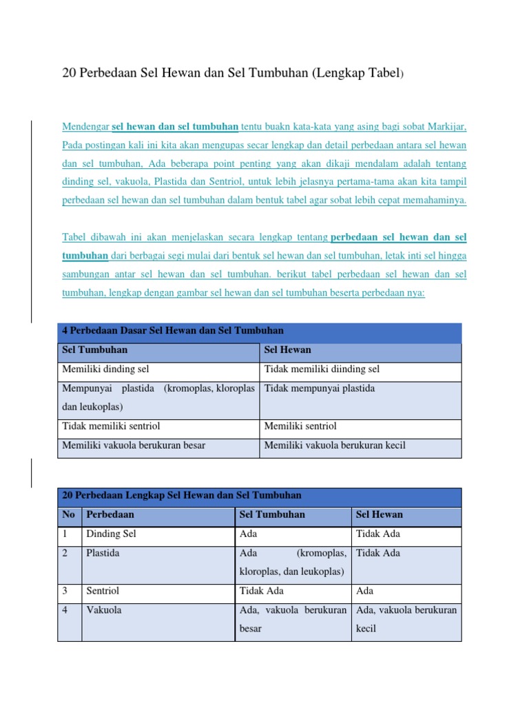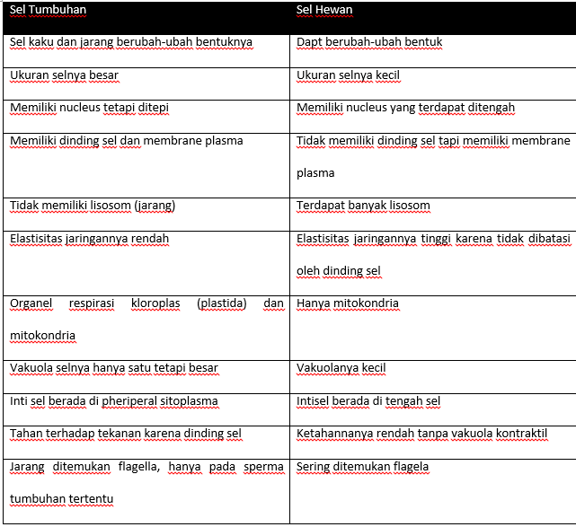 Tabel Perbedaan Sel Tumbuhan Dan Sel Hewan | Kata & Mutiara