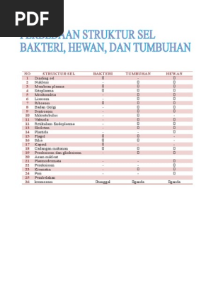 Tabel Perbedaan Sel Tumbuhan Dan Sel Hewan