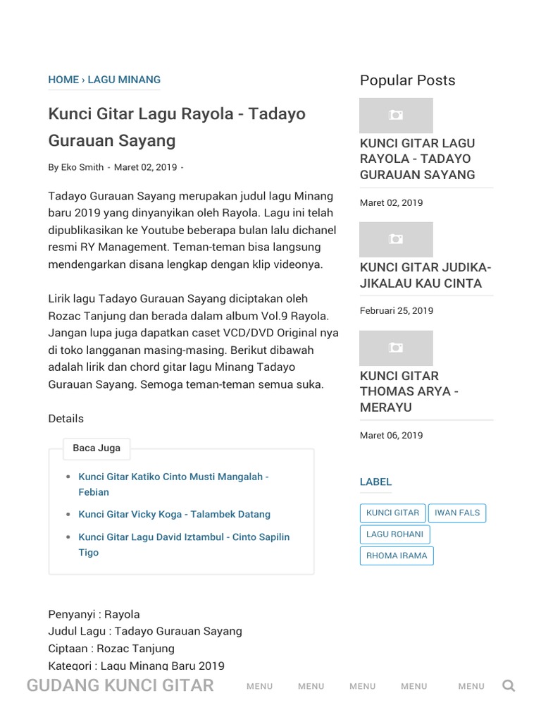 Kunci Gitar Lagu Rayola - Tadayo Gurauan Sayang - Gudang Kunci …