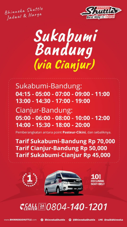 Travel Sukabumi Bandung via Cianjur PP - Update Harga & Jadwal Bhinneka Shuttle 2019