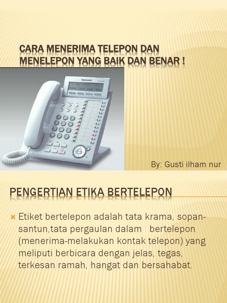 Cara Menerima Telepon Dan Menelepon Yang Baik Dan Benar !: By: Gusti ilham nur