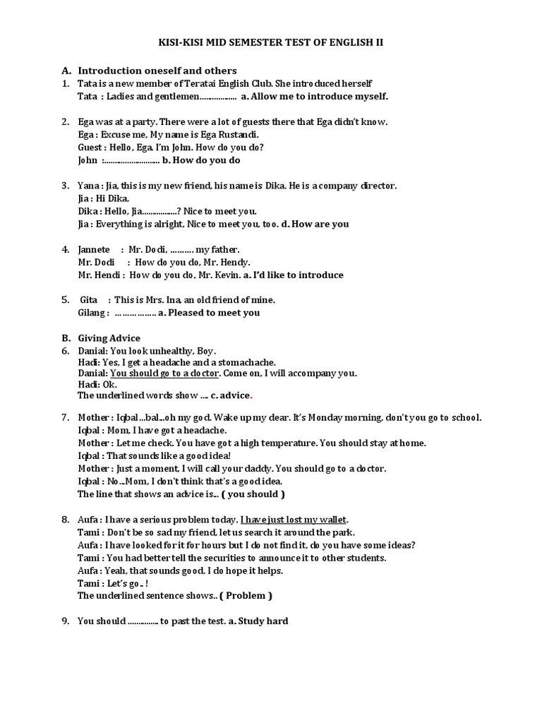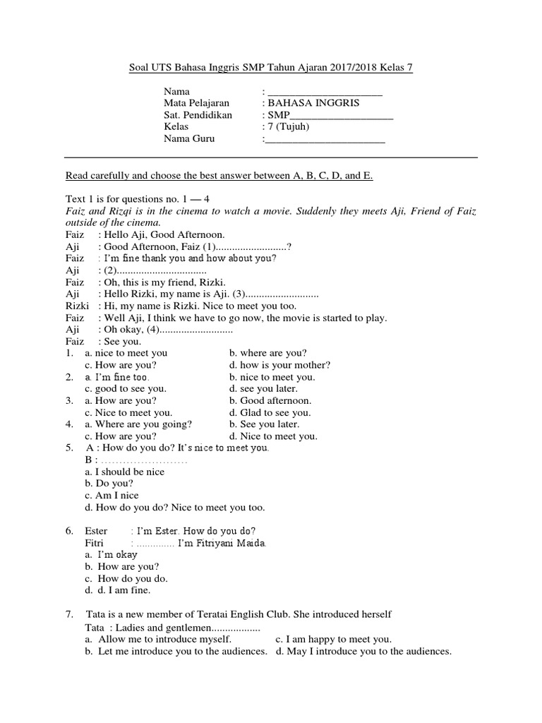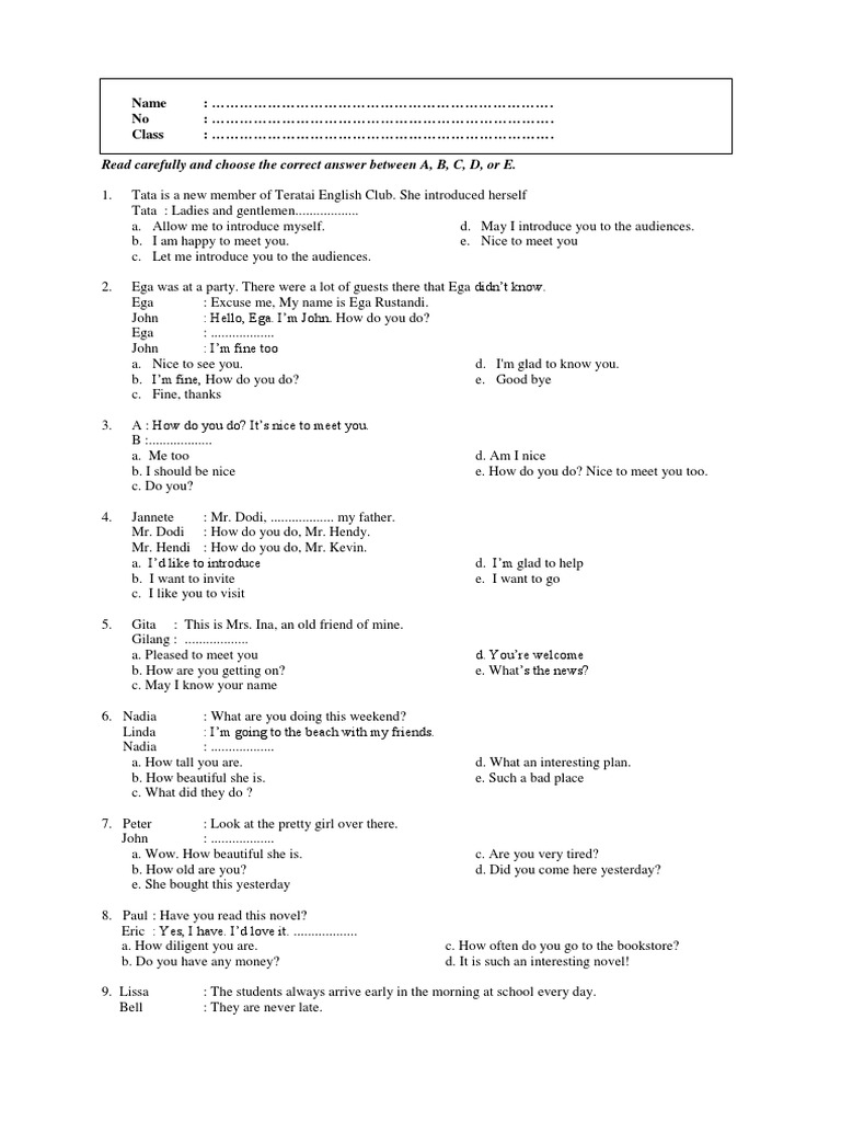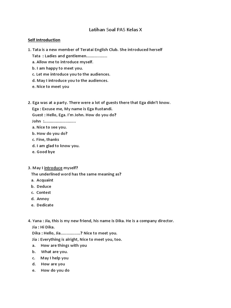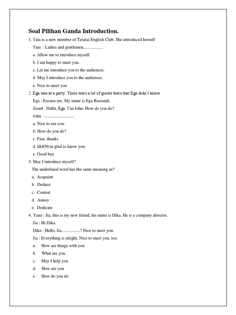 Soal Latihan Introducing Oneself and Other Read carefully and …