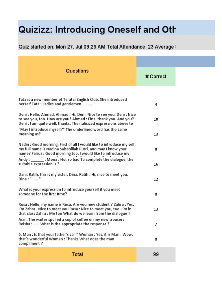 Quizizz: Introducing Oneself and Others | Mobile Technology …