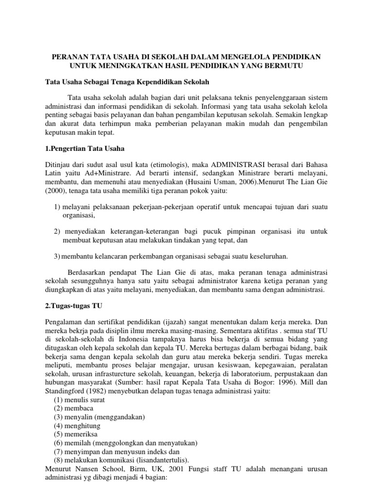 Peranan Tata Usaha Di Sekolah Dalam Mengelola Pendidikan Untuk …
