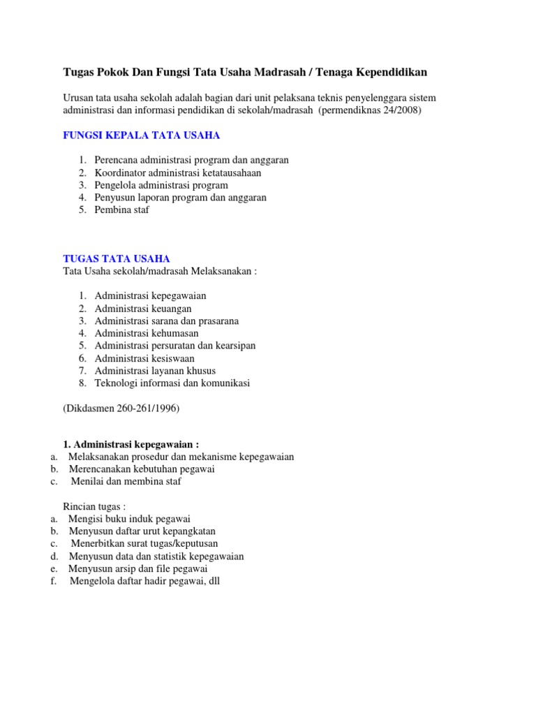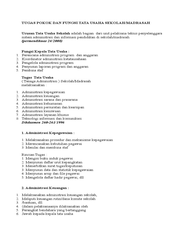 Tugas Pokok Dan Fungsi Tata Usaha Madrasah