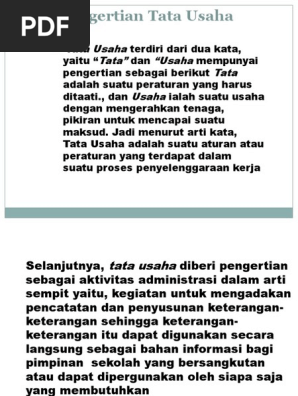 1. Pengertian Tata Usaha Tata usaha secara sistematis merupakan …