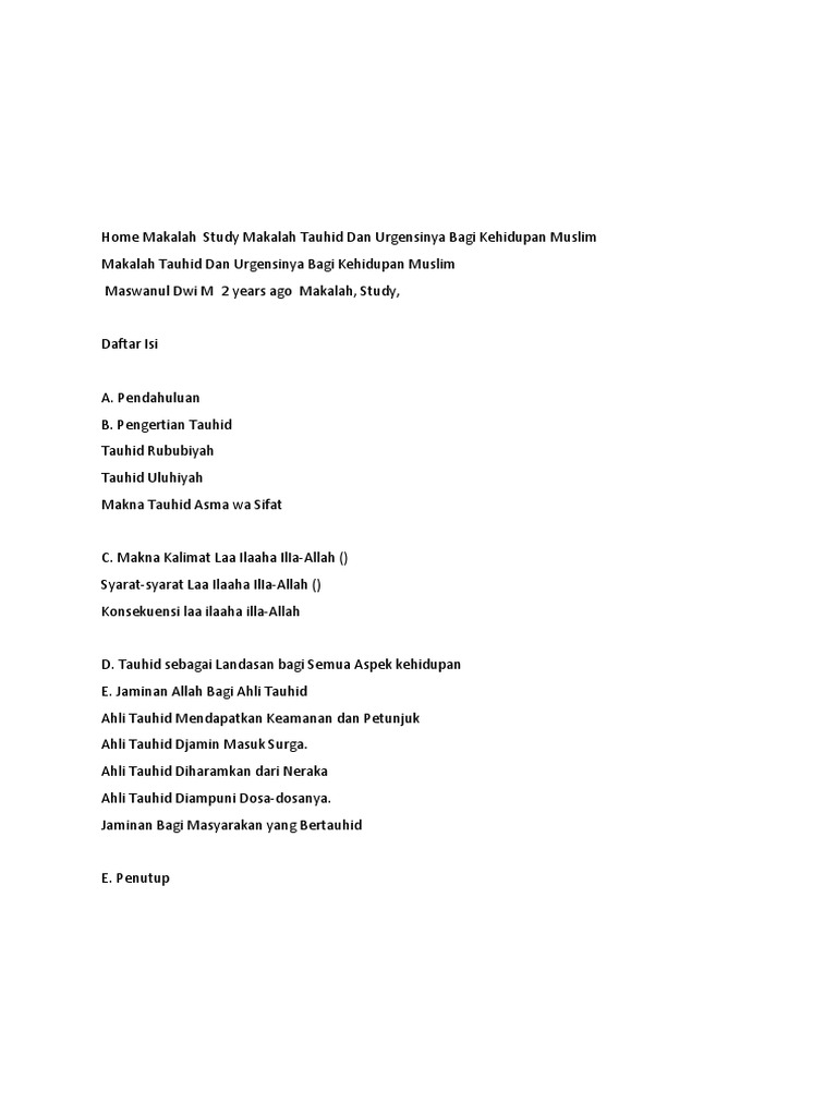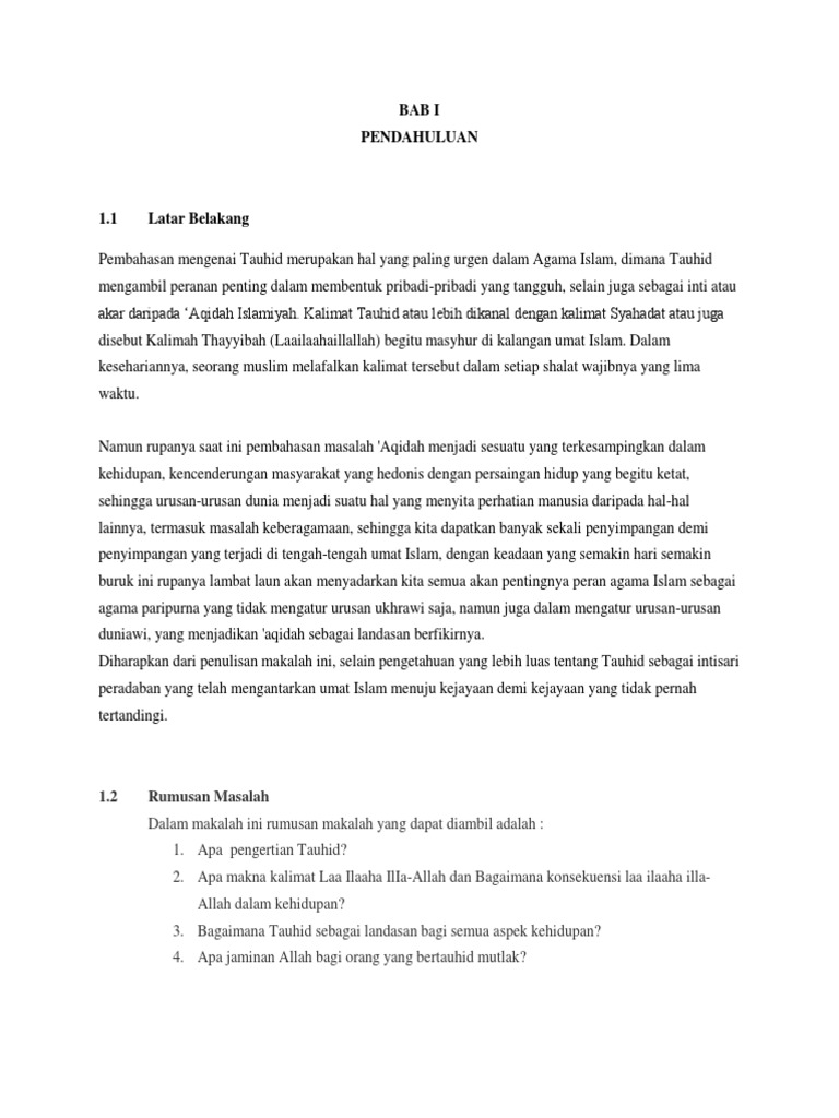 Makalah Tauhid Dan Urgensinya Bagi Kehidupan Muslim - Always Share