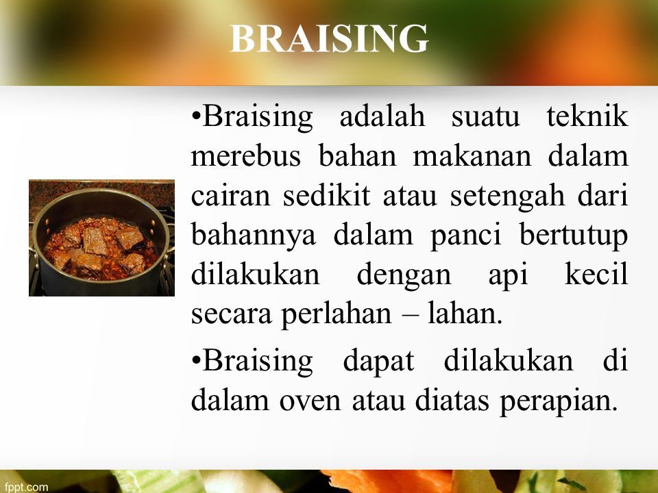 Braising merebus makanan dalam air yang lebih sedikit dari bahan …