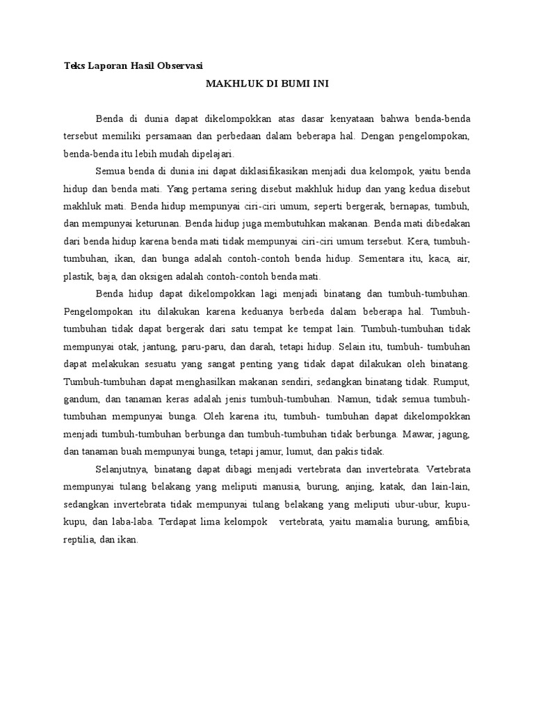 Teks Laporan Hasil Observasi