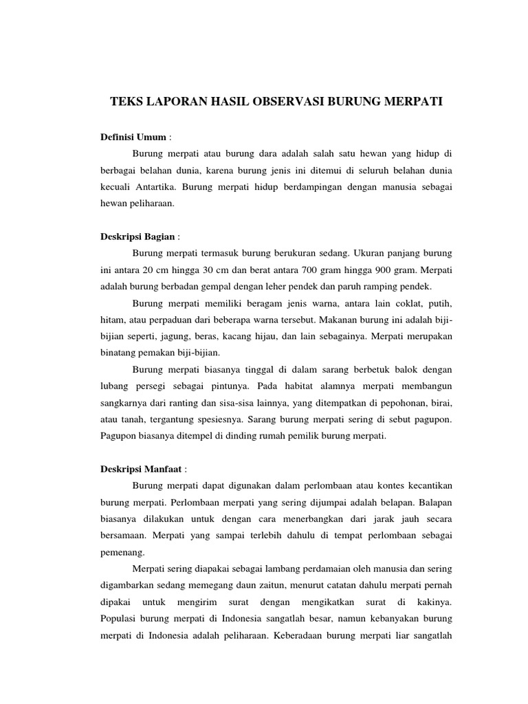 TEKS HASIL OBSERVASI BURUNG MERPATI